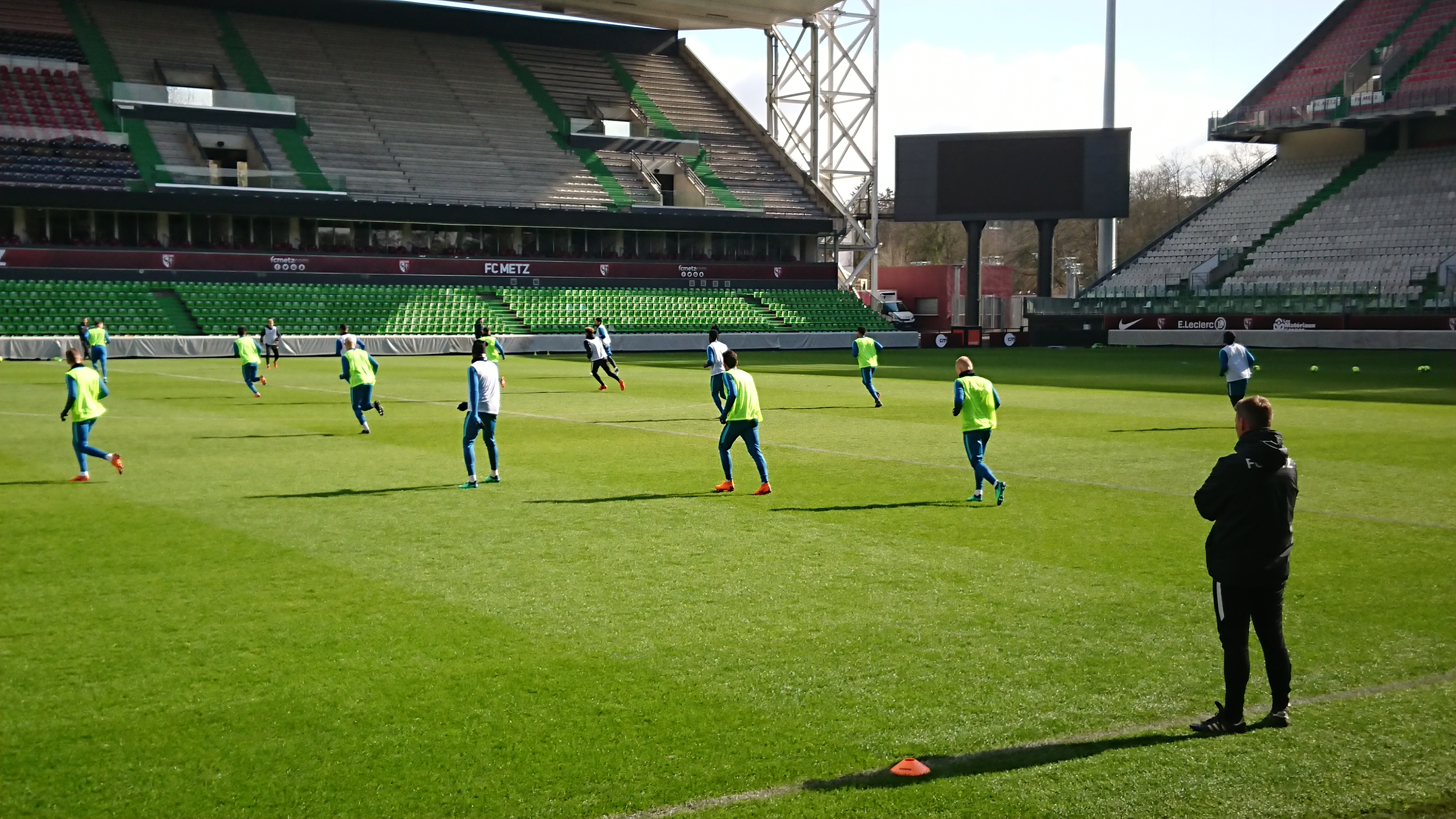 Quelques supporters du FC Metz ont eu le privilège d’assister à la séance depuis la corbeille officielle en compagnie de Sébastien Muet qui leur commentait la séance de Frédéric Hantz.
